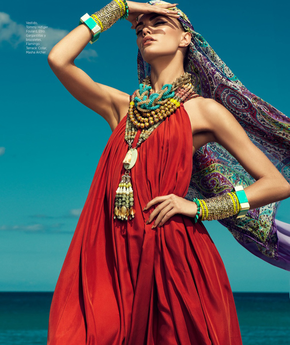 The Colors of Summer – Hitting the beach, Barbara Fialho poses for Danny Cardozoin colorful swimwear and beach cover-ups for the July issue of Harper’s Bazaar Mexico. Stylist Danny Santiago dresses the Brazilian bombshell in vibrant looks from the likes of Alexander McQueen, Louis Vuitton, Roberto Cavalli, Stella McCartney and Diane von Furstenberg. / Makeup by Euridice Martin, Hair by Joel Torres